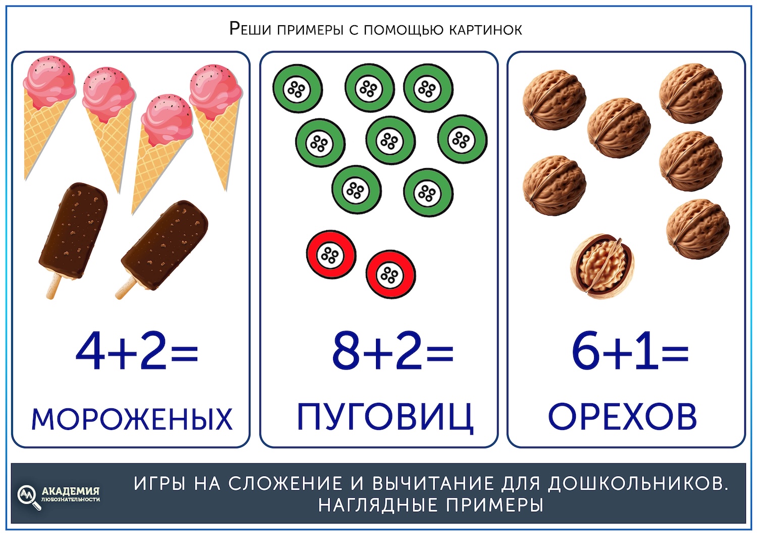 То же можно делать с конфетами, яблоками, кубиками, то есть в любой игре и повседневном действии найдется место простой математике.