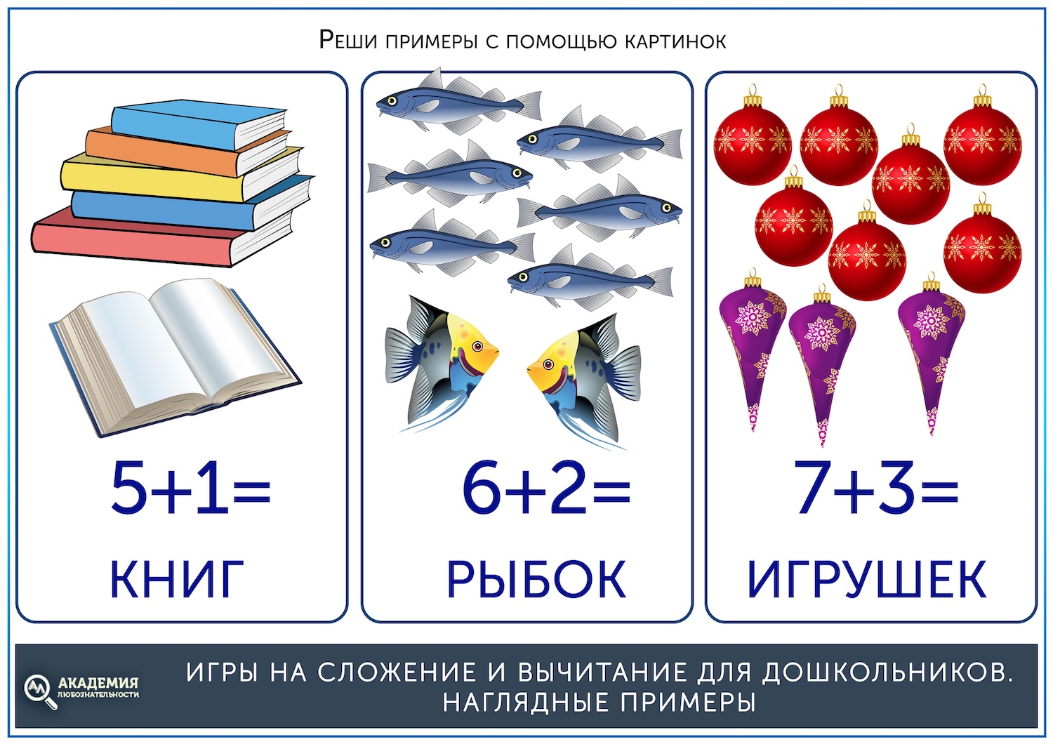 Математика для малыша может стать интересным занятием, если подойти к упражнениям с подходящими материалами и играми. Простые примеры на сложение и вычитание помогут ребёнку увереннее себя чувствовать в школе и на подготовительных занятиях. Он начнет тренироваться счету в быту, и скоро вы с удовольствием заметите, что цифры стали его лучшими друзьями!